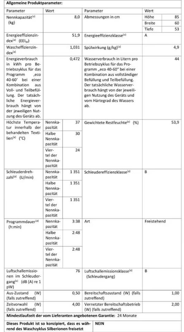 - Wasserverbrauch (volle Beladung): 44 l